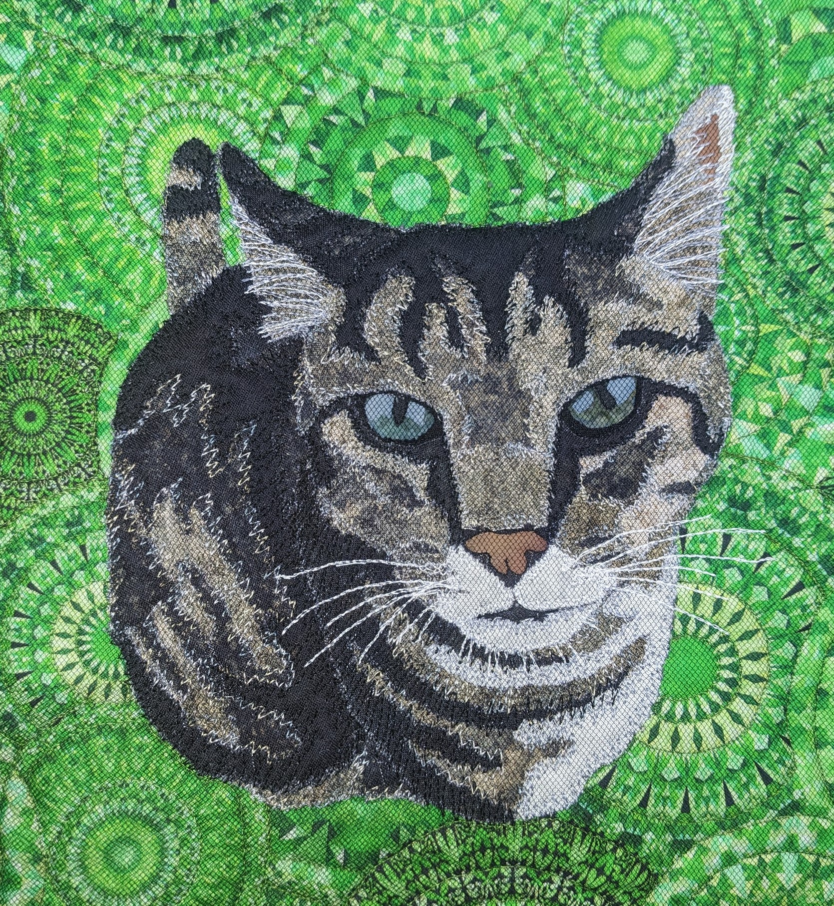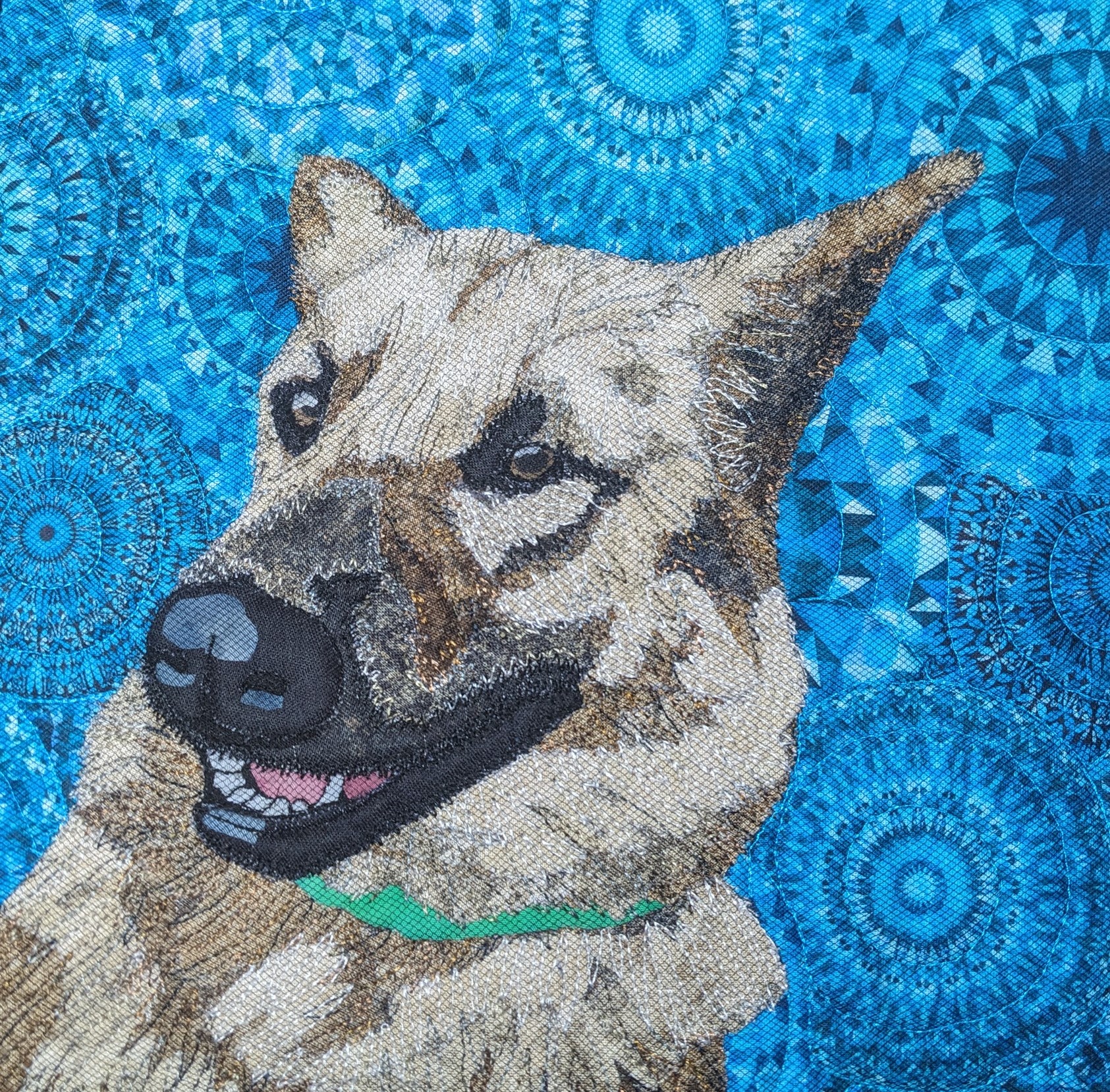 In this workshop, students will learn how to create a realistic pet portrait with layered applique and fabric collage. Using an enlarged photo of their pet as a pattern, students will learn the basics of layering: how to construct the picture from background to foreground, how to create shadows and highlights by layering fabrics, and how to create realistic eyes, ears, mouths and noses. Don’t have a pet? Borrow a photo from a friend and make a pet portrait for them!